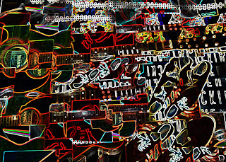Filter > Filter Gallery > Stylize > Glowing Edges > Edge Width 5 > Edge Brightness 7 > Smoothness 12.
